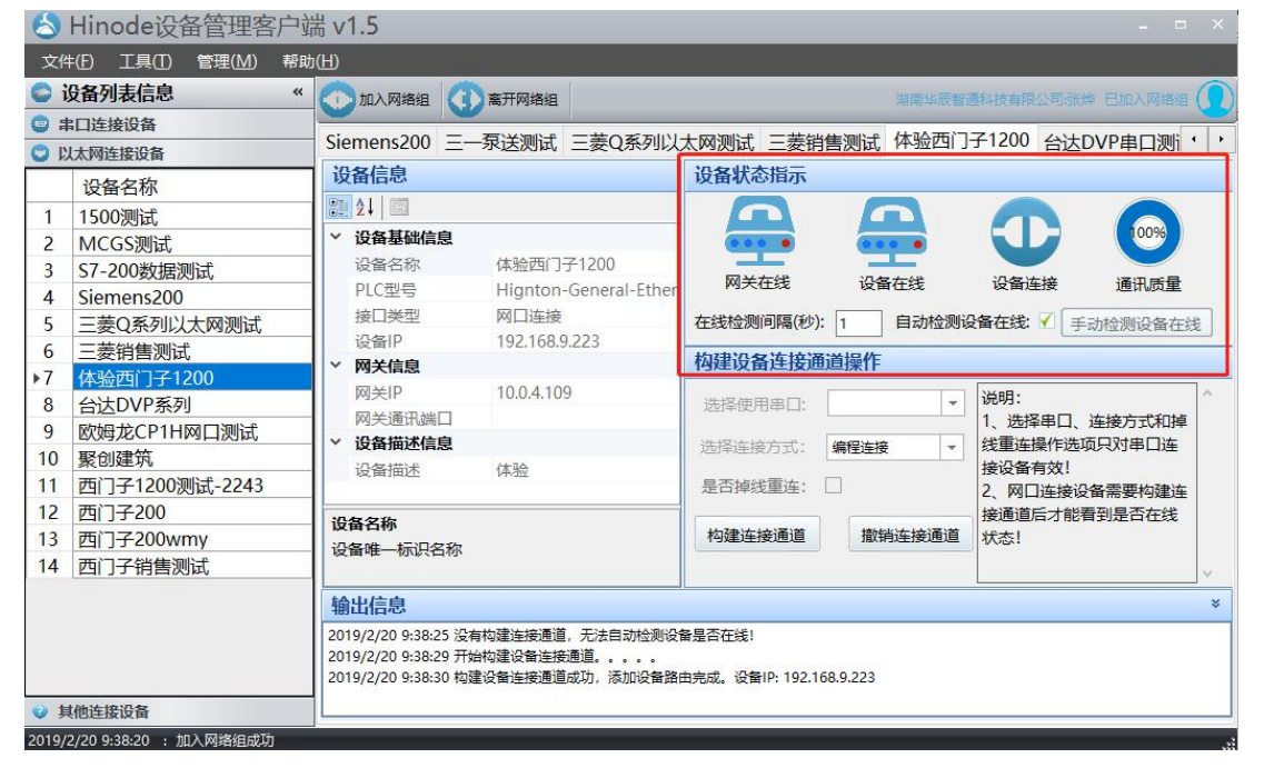 1.客戶端正常上線,網(wǎng)關(guān)及設(shè)備圖標(biāo)上線,指示燈亮,如圖,最小化窗口即可(不能關(guān)閉客戶端)。