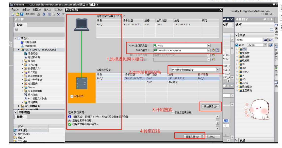 2.打開博圖軟件,新建項目、添加設(shè)備,找到對應(yīng)設(shè)備系列、型號、版本等,添加。