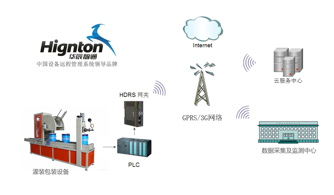 PLC遠(yuǎn)程監(jiān)控網(wǎng)關(guān)通過與灌裝包裝機(jī)械的核心控制器(如PLC等)連接,結(jié)合3G、WiFi、以太網(wǎng)及GPRS等通信方式并通過華辰智通專有的安全通道實(shí)現(xiàn)與服務(wù)器連接,實(shí)現(xiàn)設(shè)備的遠(yuǎn)程監(jiān)控及管理控制,并通過HDRS平臺(tái)強(qiáng)大的數(shù)據(jù)分析能力,分析來自控制器的各種數(shù)據(jù),結(jié)合客戶自己設(shè)定的預(yù)警值實(shí)現(xiàn)對(duì)設(shè)備的故障預(yù)警及診斷功能,完成遠(yuǎn)程的控制系統(tǒng)程序級(jí)的在線診斷、上下載和現(xiàn)場(chǎng)視頻查看、數(shù)據(jù)采集等多種功能,為設(shè)備提供分鐘級(jí)別的維護(hù)和診斷響應(yīng),并能夠依據(jù)客戶的要求提供運(yùn)行的預(yù)警保障。