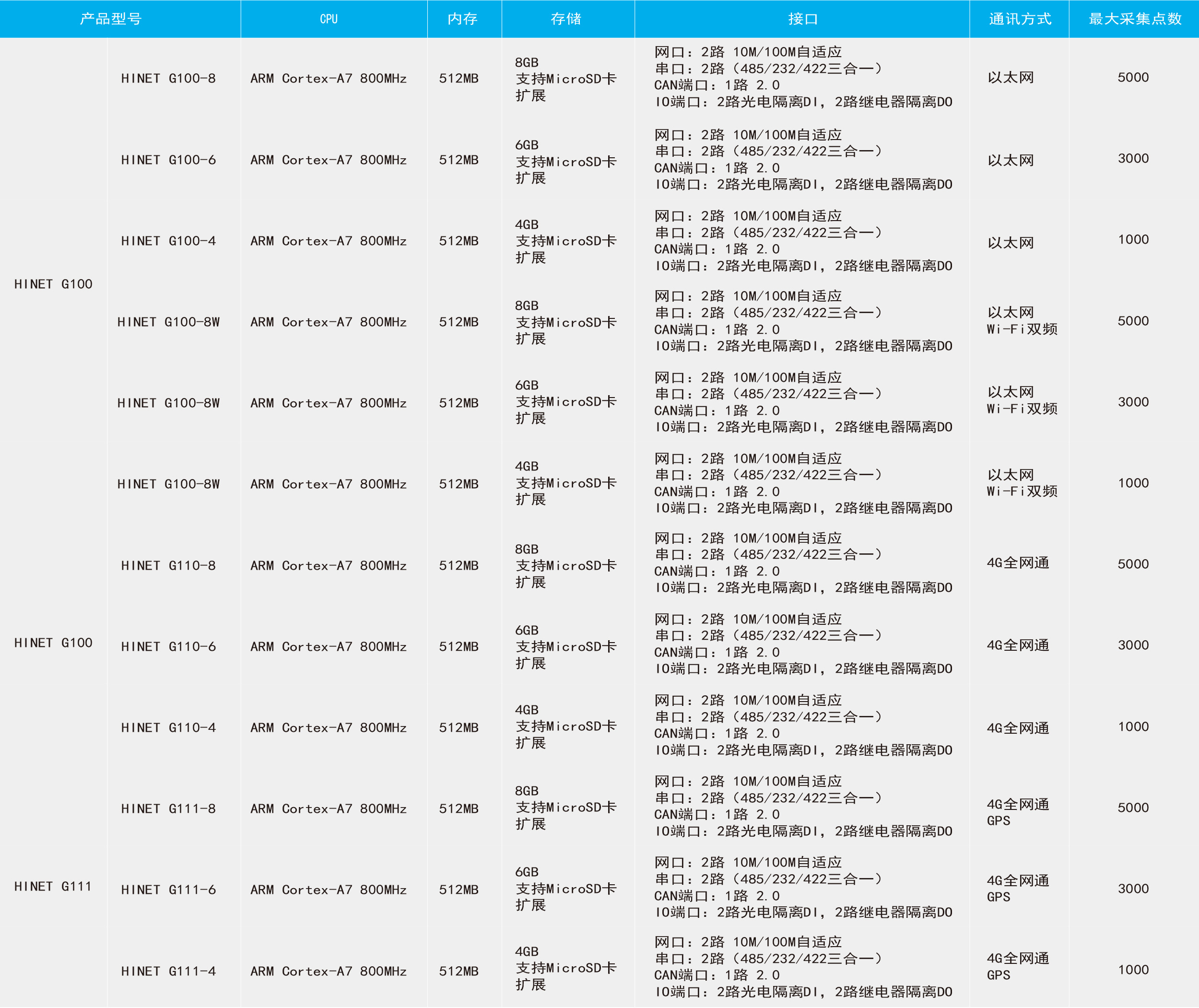 HINET·G系列邊緣計(jì)算網(wǎng)關(guān),是華辰智通最新推出的—款面向工業(yè)現(xiàn)場(chǎng)設(shè)備接入、數(shù)據(jù)采集、設(shè)備監(jiān)控的工業(yè)級(jí)邊緣計(jì)算網(wǎng)關(guān)。采用ARM Cortex-A7 800MHz高性能CPU,擁有以太網(wǎng)、串口、CAN口、IO口等豐富的接口,支持以太網(wǎng)、2G/3G/4G網(wǎng)絡(luò)接入方式,可滿足絕大部分工業(yè)應(yīng)用場(chǎng)景及工業(yè)設(shè)備接入。