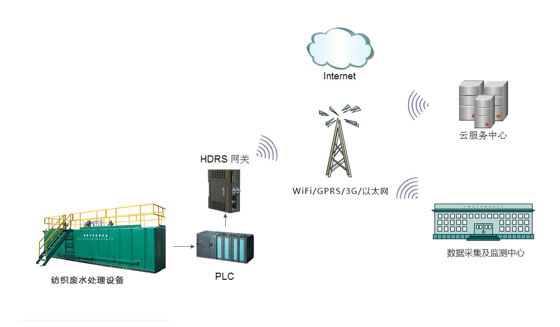 華辰智通自主研發(fā)的一款基于PLC遠(yuǎn)程監(jiān)控的紡織廢水處理系統(tǒng)通過HDRS遠(yuǎn)程安全pcl通訊網(wǎng)關(guān)及3GRTU等設(shè)備監(jiān)控各個(gè)環(huán)節(jié)的傳感器和各種設(shè)備的PLC或其他控制器,并通過WIFI、3G、4G、5G以太網(wǎng)等各種通訊方式將數(shù)據(jù)采集至HDRS設(shè)備云遠(yuǎn)程綜合管理平臺(tái)或組態(tài)王等上位機(jī)上,通過短信預(yù)警、視頻監(jiān)控等從而實(shí)現(xiàn)并節(jié)省大量的人力物力以及減少誤差的引入,使處理過程更加科學(xué)更加合理,提高了工作效率和工作質(zhì)量。